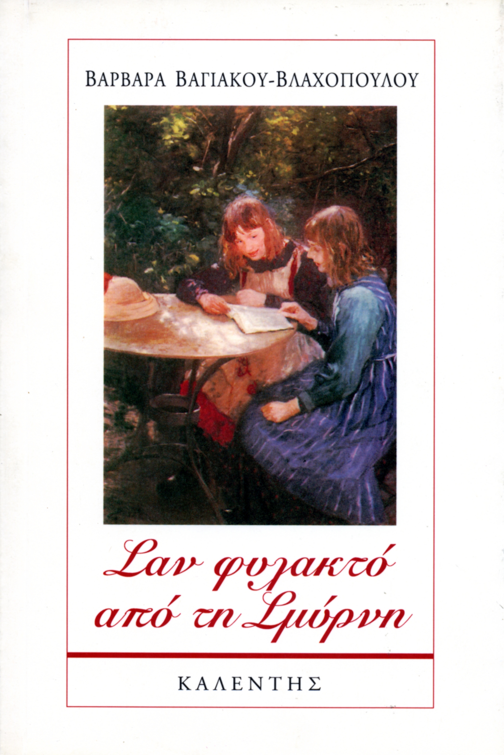 ΣΑΝ ΦΥΛΑΧΤΟ ΑΠΟ ΤΗ ΣΜΥΡΝΗ Έκδοση: Καλέντης, 2003 Ενα τρυφερό αξιολάτρευτο μυθιστόρημα. Περιγράφει τη ζωή μιας Σμυρνιάς, της Αγλαΐας, που έζησε τον ξεριζωμό με την καταστροφή της Σμύρνης και εγκαταστάθηκε στο νησί της Λήμνου με τη μητέρα της και την αδερφή της, αφήνοντας πίσω τον αδικοσφαγμένο απ' τους Τούρκους πατέρα. |